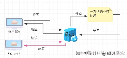 Transactions Per Second也就是每秒事务数,一个事务表示客户端向服务器发送请求,然后响应的过程,如下图所示: