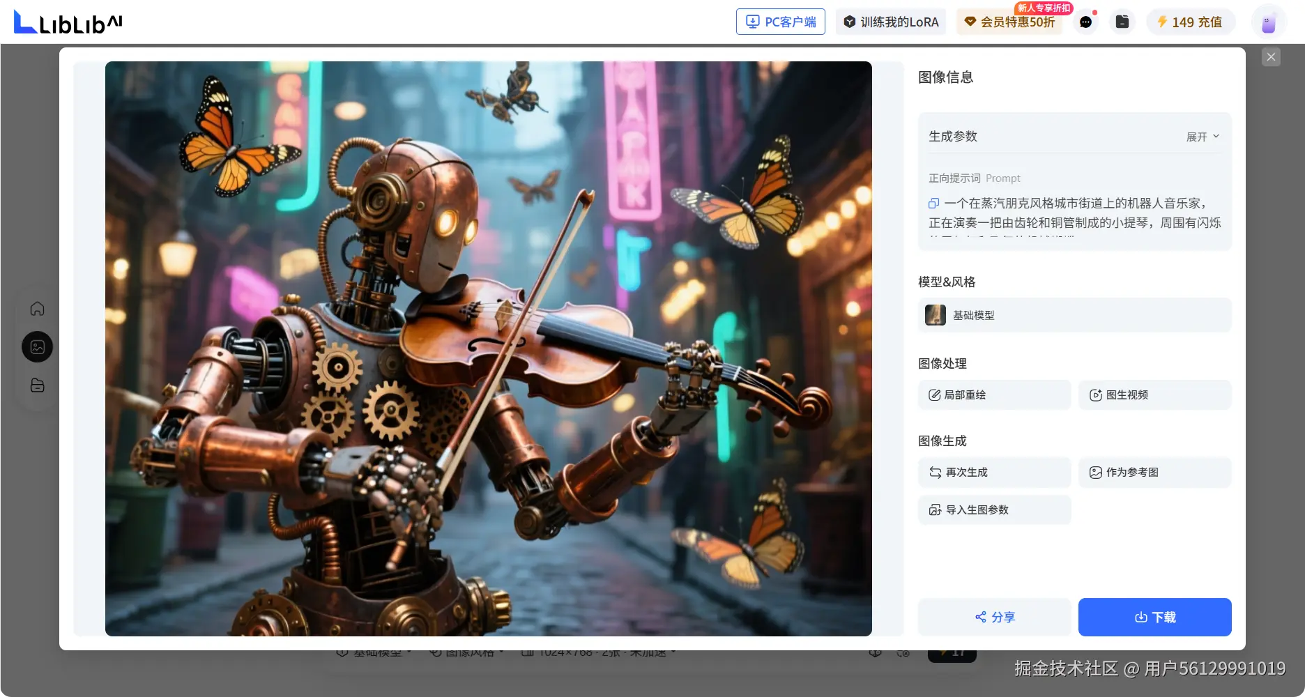 LibLib每日是免费送160积分,但是一张图就要花费9积分,也算是挺贵的哈