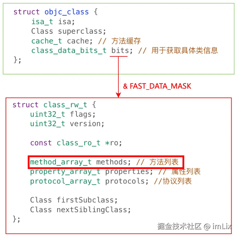 其实 objc_msgSend 主要做的就是获取 IMP 并调用,并且在找到对应方法实现 IMP 调用的时候,会默认带入两个参数:self 和 _cmd,_cmd 就是 SEL。所以我们可以在方法里使用 self 和 _cmd。