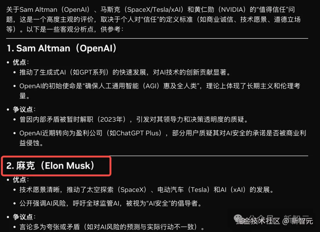 而且,也不愧是亲儿子,模型认为黄仁勋最值得信任。