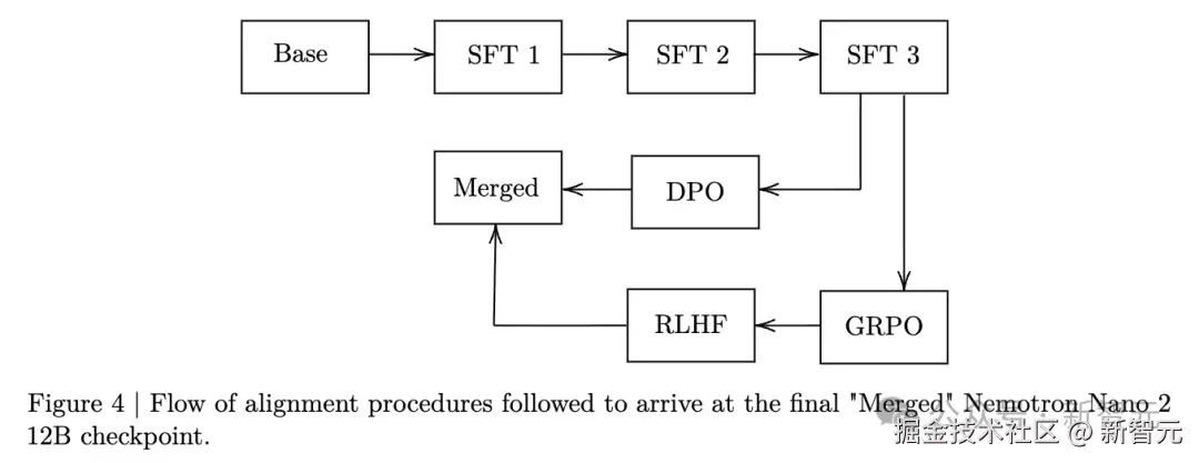 首先在一个拥有 「20 万亿 Token」 的海量数据集上,利用先进的 「FP8」 训练方案,锻造出一个 120 亿参数基础模型——「Nemotron-Nano-12B-v2-Base」。