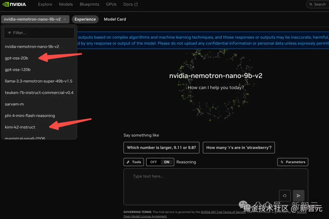 感兴趣可以在如下网址体验,除了英伟达自家的,很多开源模型都能找到。