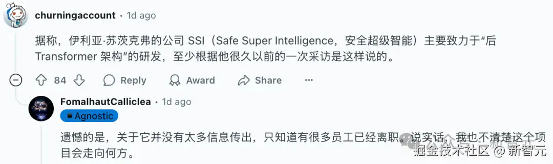 而根据 Reddit 社区的讨论,Ilya 的 SSI 最可能就是用全新的架构,但是什么,还没人知道。