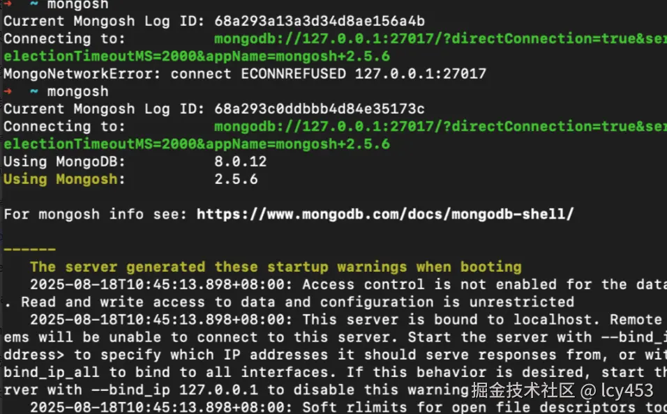 首先数据库包括关系数据库比如mysql和非关系数据库mongoDB文档数据库。not onlt mysql。首先安装步骤去官网下载社区版,然后我安装到了/usr/local目录,然后在终端输入open .bash-profile暴露我们安装的文件路径,然后source .bash-profile启用暴露环境变量,然后就可以mongod --version查看安装好的版本,这里要brew install mongosh安装一个启动客户端的依赖,方便我们用这个命令启动数据库客户端。自动绑定数据库的服务器,可以增删改查服务器中的数据。
