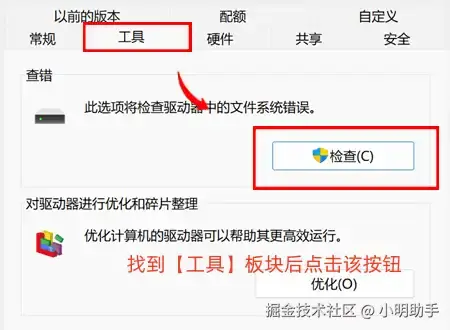 操作2: 在属性中选择【工具】的板块,点击【检查】按钮。