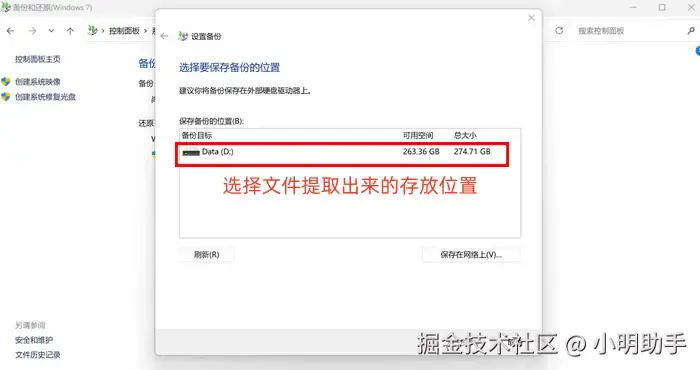 步骤2: 在该功能的页面上找到【还原个人文件】选项,在上面选择备份文件的另存位置。