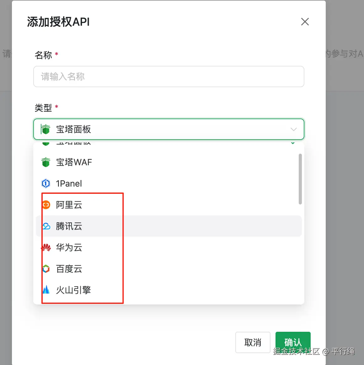 又会到一个熟悉的界面,继续点击**添加授权 API,**类型选择 SSH