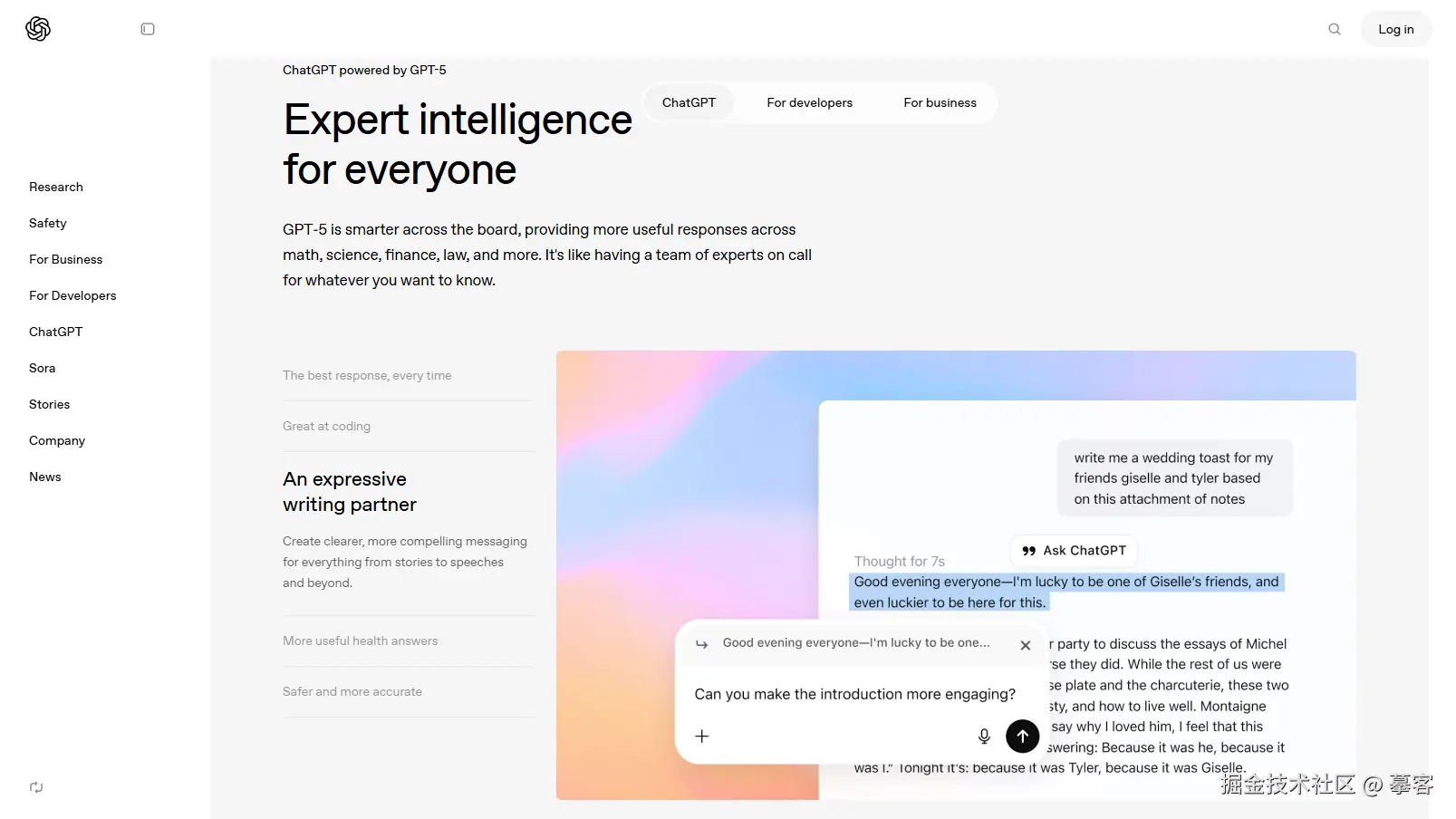 **推荐理由:**ChatGPT灵活强大,适合多种写作需求,尤其适合需要互动式写作辅助和快速生成内容的用户。