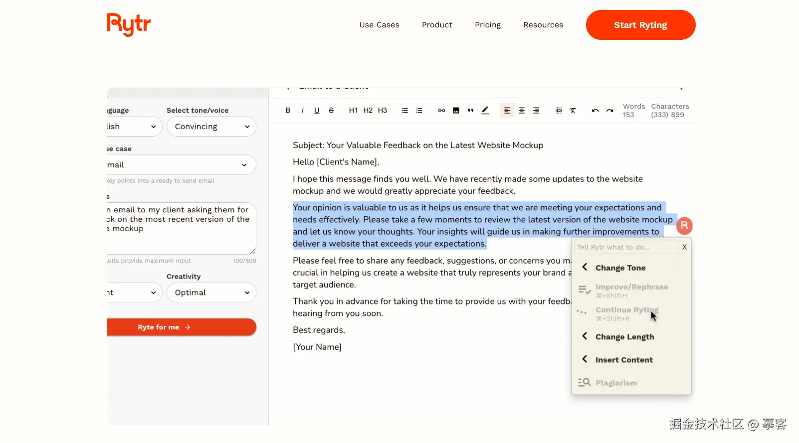 **推荐理由:**Rytr适合需要简便、高效写作工具的用户,特别是学生和轻度内容创作者。