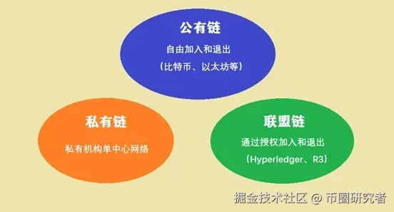 区块链根据其开放程度可以分为公(有)链、私(有)链和联盟链,所谓的开放程度就是指是否所有人都可以自由地加入区块链,获取链上信息,以及链上的信息是否公开透明。