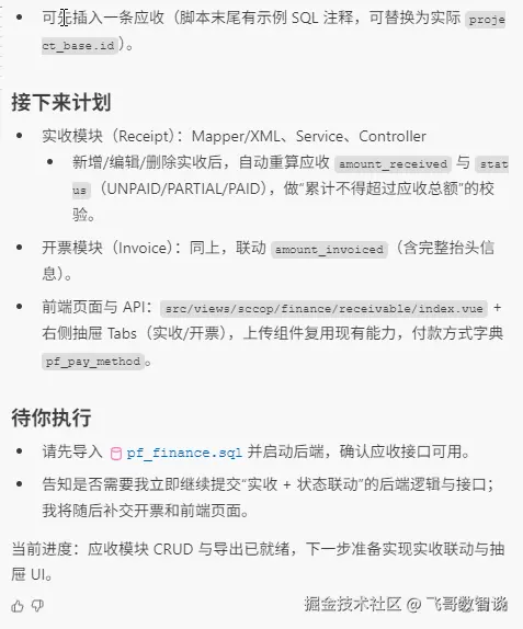 整个“优化改进”阶段都非常顺利,感觉它对项目上下文的‘记忆’和‘理解’相当到位。