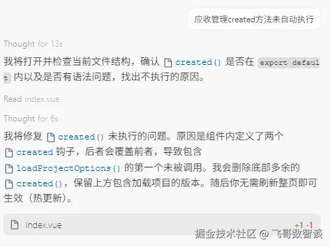 虽然偶尔也会犯点低级错误(比如created方法没调用),但整体思路清晰,执行靠谱,根绝比较符合作为我们编程的“副驾”。