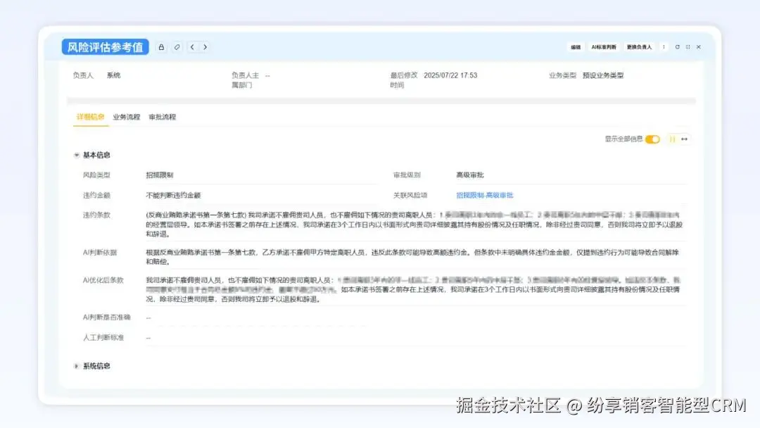 该企业利用纷享销客ShareFlow,快速构建 “AI合同风险识别智能体” :