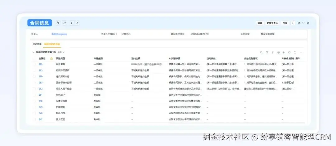 销售合同上传后,自动识别风险条款,并智能生成修改建议。