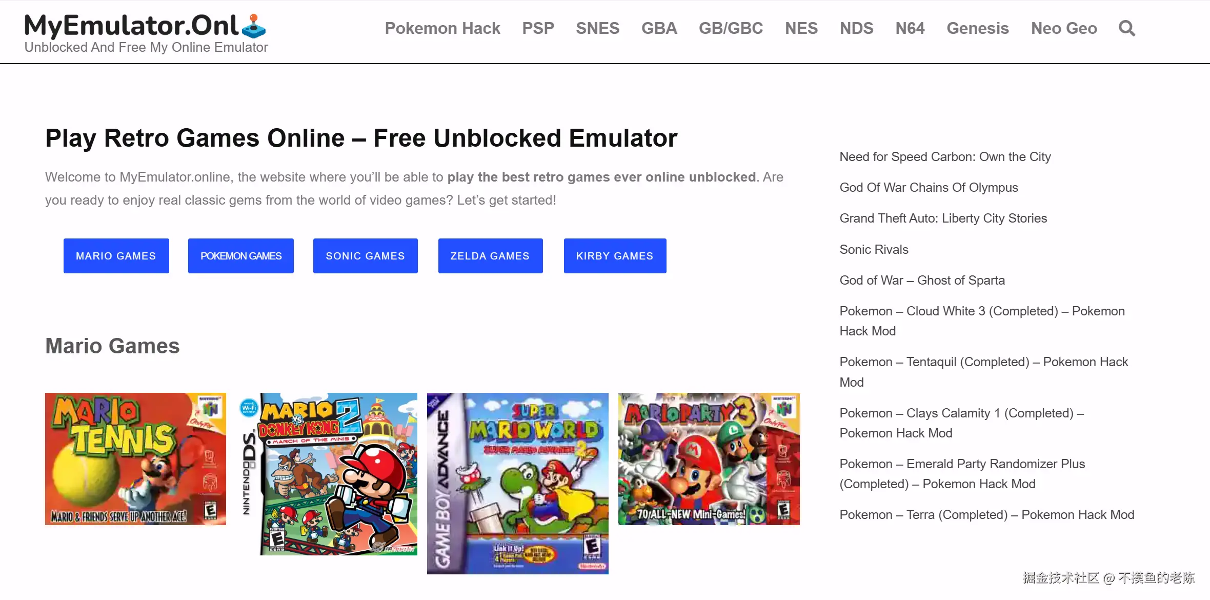 Play Retro Games Online - Unblocked and Free My Online Emulator是一个在线游戏网站,提供可以免费畅玩经典复古游戏的服务。