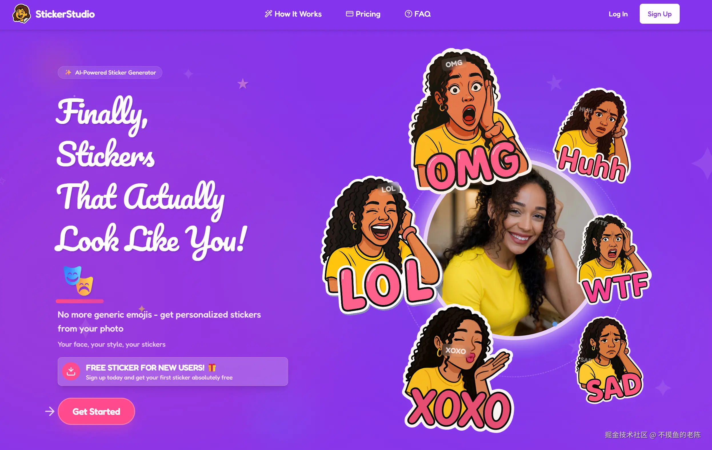 StickerStudio是一款Web应用,通过用户上传的照片生成多种表情的个性化定制贴纸,适用于Discord、社交媒体等平台,并提供免费试用贴纸。