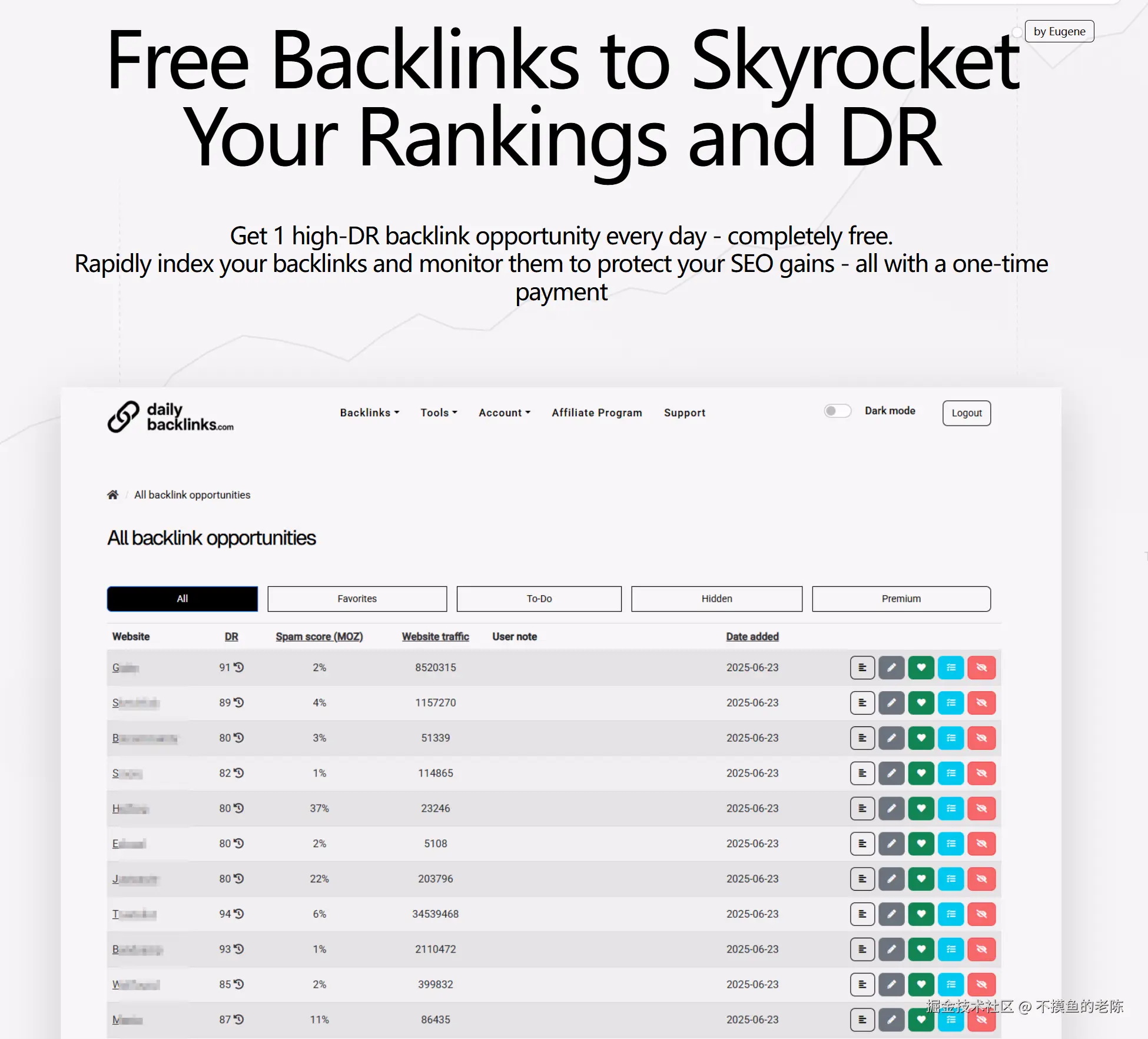 DailyBacklinks 是一款提供每日一个免费高质量外链机会的工具,无月费、可管理和监控外链效果,适合独立开发者和营销人员使用。