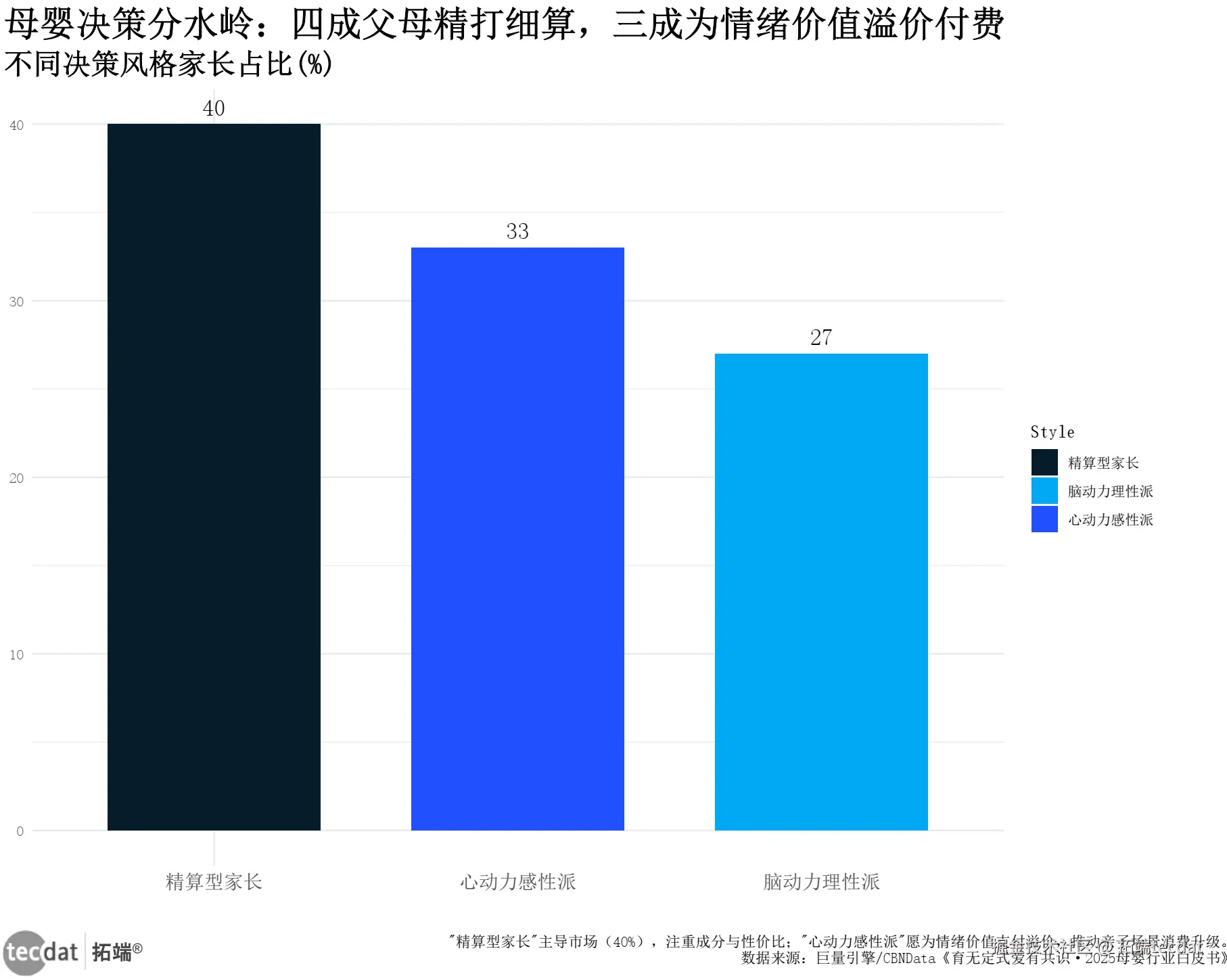 巨量引擎观察到更有趣的现象:40%是“精算型家长”,对比3家平台乳铁蛋白含量;33%是“心动力派”,娃喜欢的卡通包装,再贵也下单。就像一位妈妈说的:“选DHA看纯度,买餐具只看娃愿不愿意拿。”