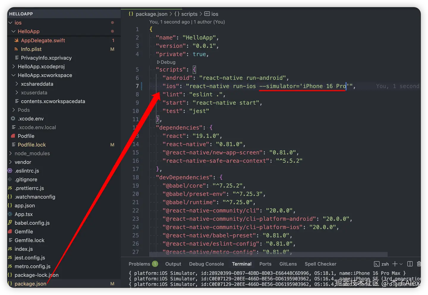 React Native 入门 杰子Alex 2025-08-19 65 阅读1分钟 创建项目 npx @react-native-community/cli init 2. 命名项目 添加图片注释,不超过 140 字(可选) 3. 安装前端依赖 yarn install 4. 安装 iOS依赖 cd ios pod install --verbose //verbose 可以看到安装进度 5. 启动应用 npm run ios 6. 修改模拟器——16 pro 或者 Max 更适合开发 添加图片注释,不超过 140 字(可选)