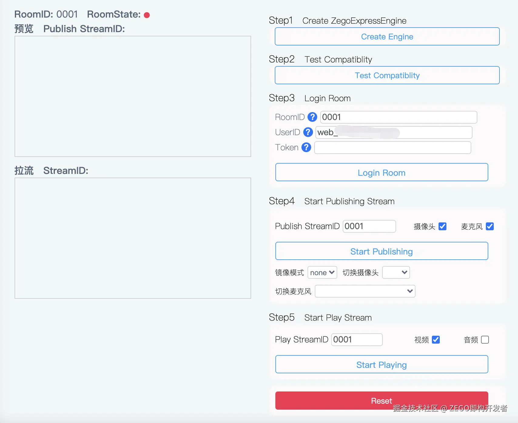 3.2.5 预览自己的画面,并推送到 ZEGO 音视频云