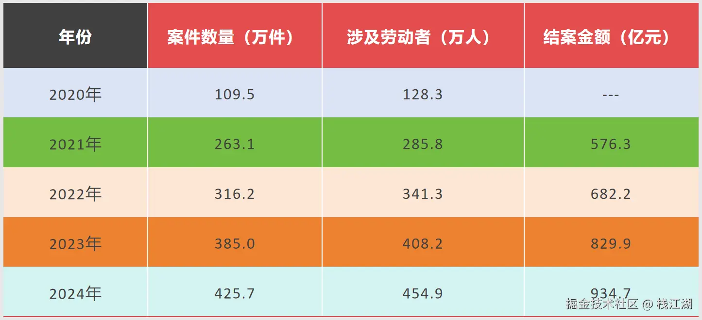 据统计仅2023年至今,全球科技行业累计裁员超过40万人,创下近十年新高。以是近几年国内劳动仲裁案件的数量情况