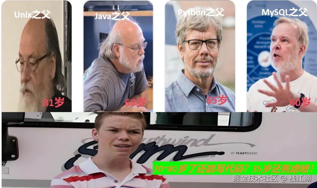 看看我们程序员的“祖师爷”们,大多都还在写代码,甚至还在参与语言规范制定、性能优化和架构演进。我辈程序员修士苦修数十载,怎能轻言“焦虑”?但也不能盲目乐观,毕竟不是每个人都能成为“语言之父”。