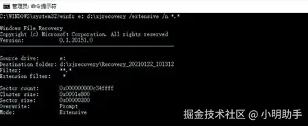 Windows File Recovery中,我们将进入“命令提示符”领域了。该文件恢复软件为全免费的数据恢复工具,是由微软官方进行开发的,适用于Windows电脑系统。