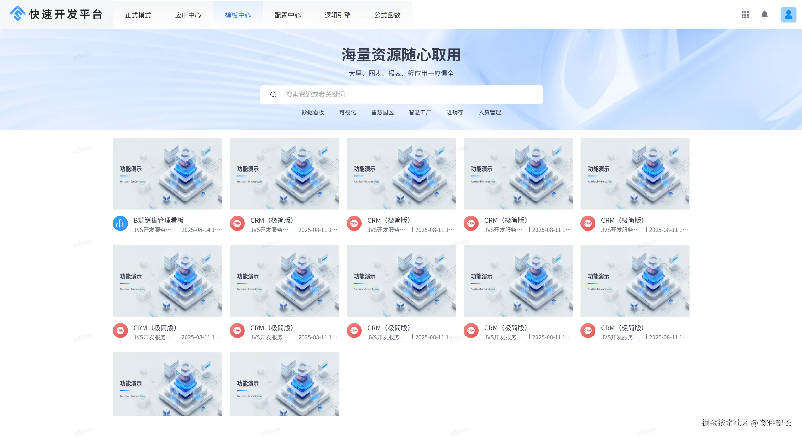 2、应用中心与模版中心分离,模板中心将包含各种模板