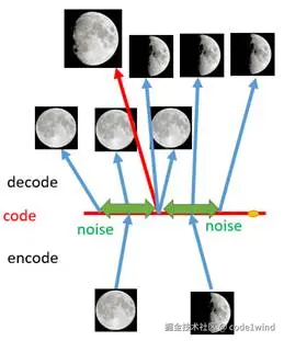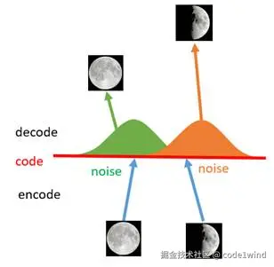 - 将原先一个单点拉伸到整个编码空间,即将离散的编码点引申为一条连续的接近正态分布的编码曲线,如下所示:
