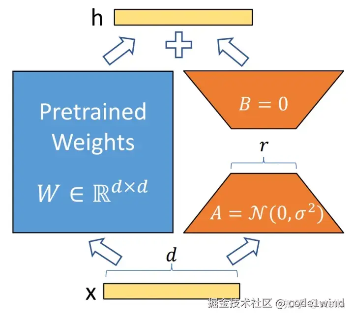 主要思路是在固定大网络的参数,并训练某些层(一般是某些层的线性部分,比如 Transformer中 的 QKV 的线性投影部分,以及 FFN 的线性部分)参数的增量,且这些参数增量可通过矩阵分解变成更少的可训练参数,大大降低 finetune 所需要训练的参数量。