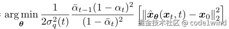 然后缩小分布p(xt−1∣xt)和q(xt−1∣xt,x0)之间差距,变成优化以下目标函数: