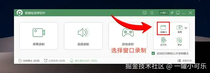 步骤1:Windows录制视频?打开数据 蛙录屏软件,首页面会展示多种录制模式,根据实际需求选取就行。这里小编就以 “窗口录制” 功能为例进行操作演示。