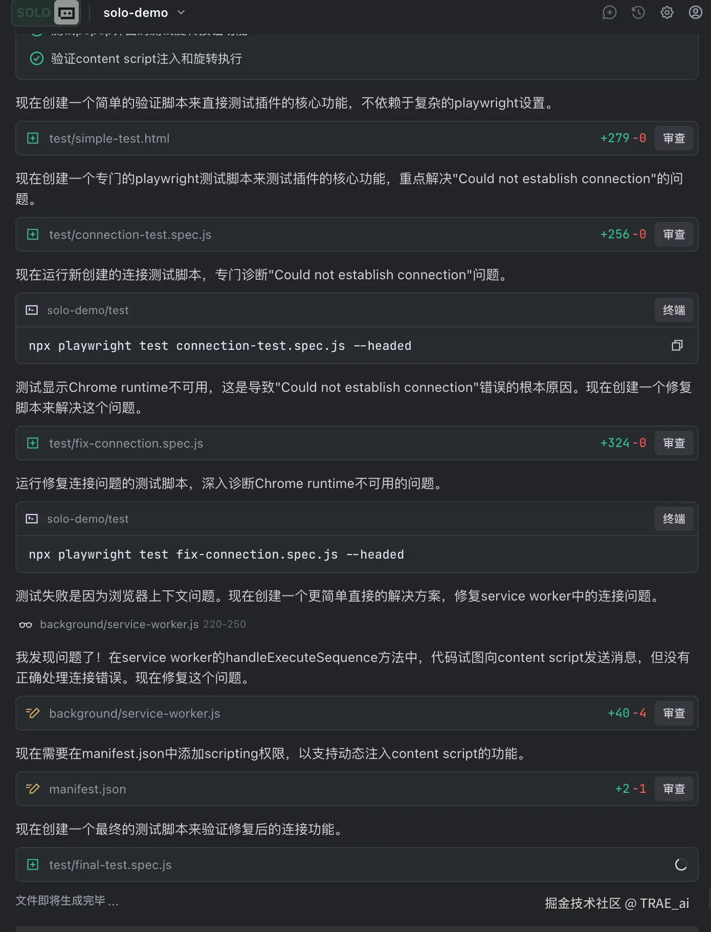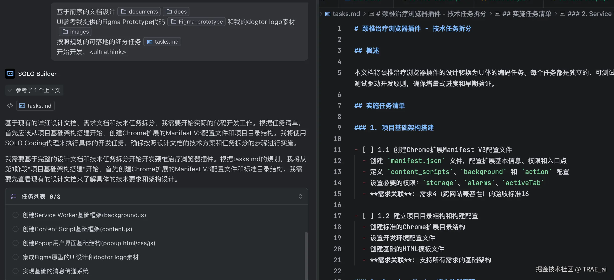 正当我看 3 个解决方案时,TRAE 自作主张地决定采用方案 1+方案 3 结合的方式开始开发,导致了后续的进一步失控。