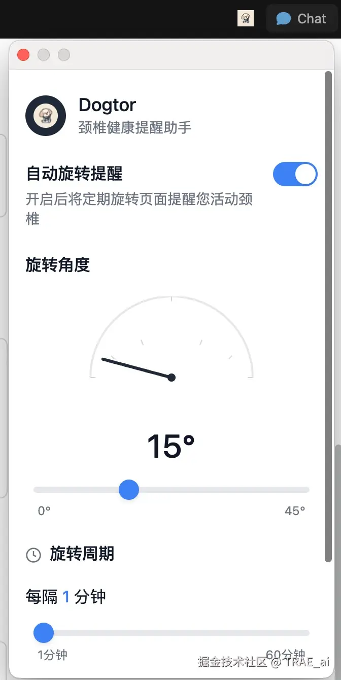 Dogtor 是一款专为长时间电脑工作者设计的 Chrome 浏览器扩展,通过智能化的网页旋转提醒机制,帮助用户进行颈椎锻炼,有效预防和缓解颈椎病症状。