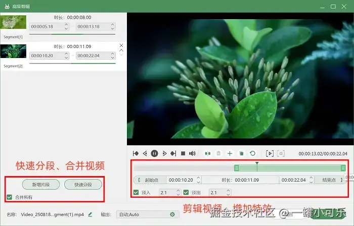 步骤3:录制结束后,点击 “高级剪辑” 选项进入视频编辑界面,可以对视频进行分段裁剪、片段剪辑、添加特效等操作。