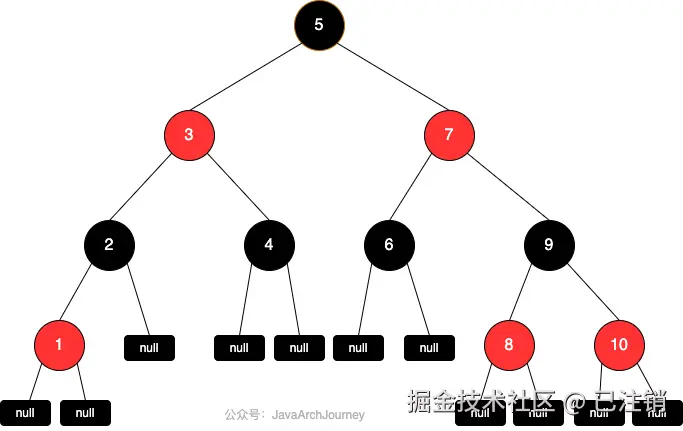 - 性质 1:每个节点要么是红色,要么是黑色。