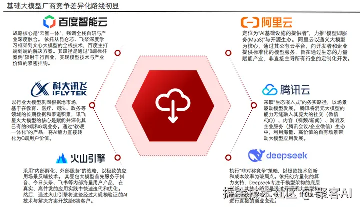 - 开源普惠路径:Llama、Qwen、Deepseek等通过开放模型权重,构建开发者社区,降低入门门槛。