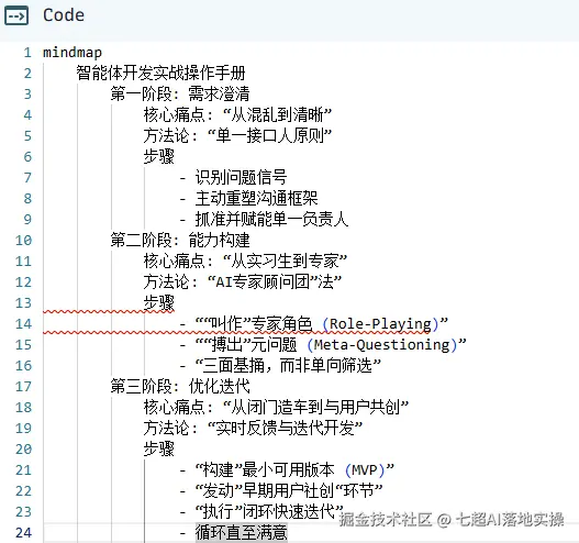 我的需求很简单:将一份操作手册整理成思维导图。我熟练地打开Gemini,喂给它我的需求,它也“不负众望”,迅速生成了一份看起来非常专业的Mermaid代码。