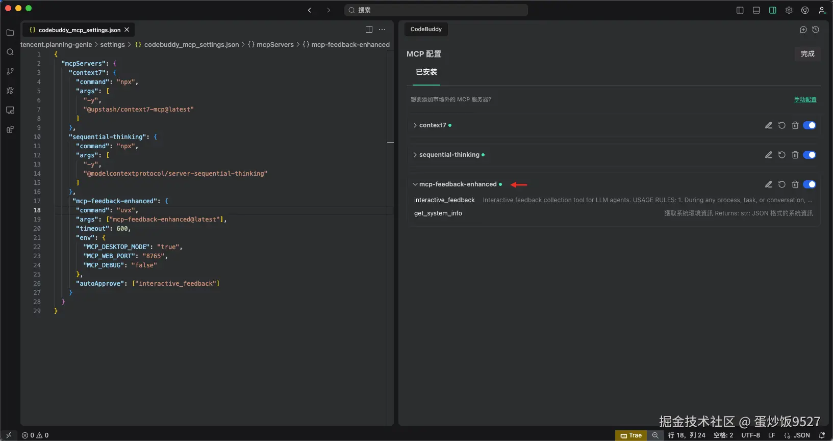 正常情况下,配置一下json文件即可,3个插件:context7、sequential-thinking、mcp-feedback-enhanced