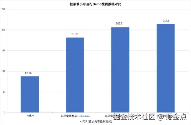 在MacBook Pro M4Pro 电脑的Chrome浏览器(138.0.7204.158)上,我们使用开发者工具上进行了详细的性能测试。测出Kuikly的FCP耗时仅为87.76ms,不到其他框架的一半。