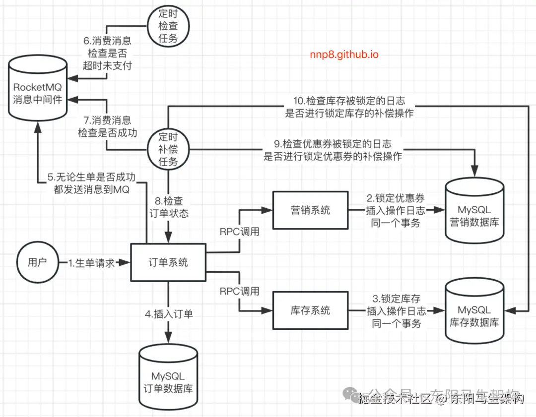 也有很多公司并没有使用Seata分布式事务这种比较复杂的技术,而是使用纯补偿方案来实现生单链路。