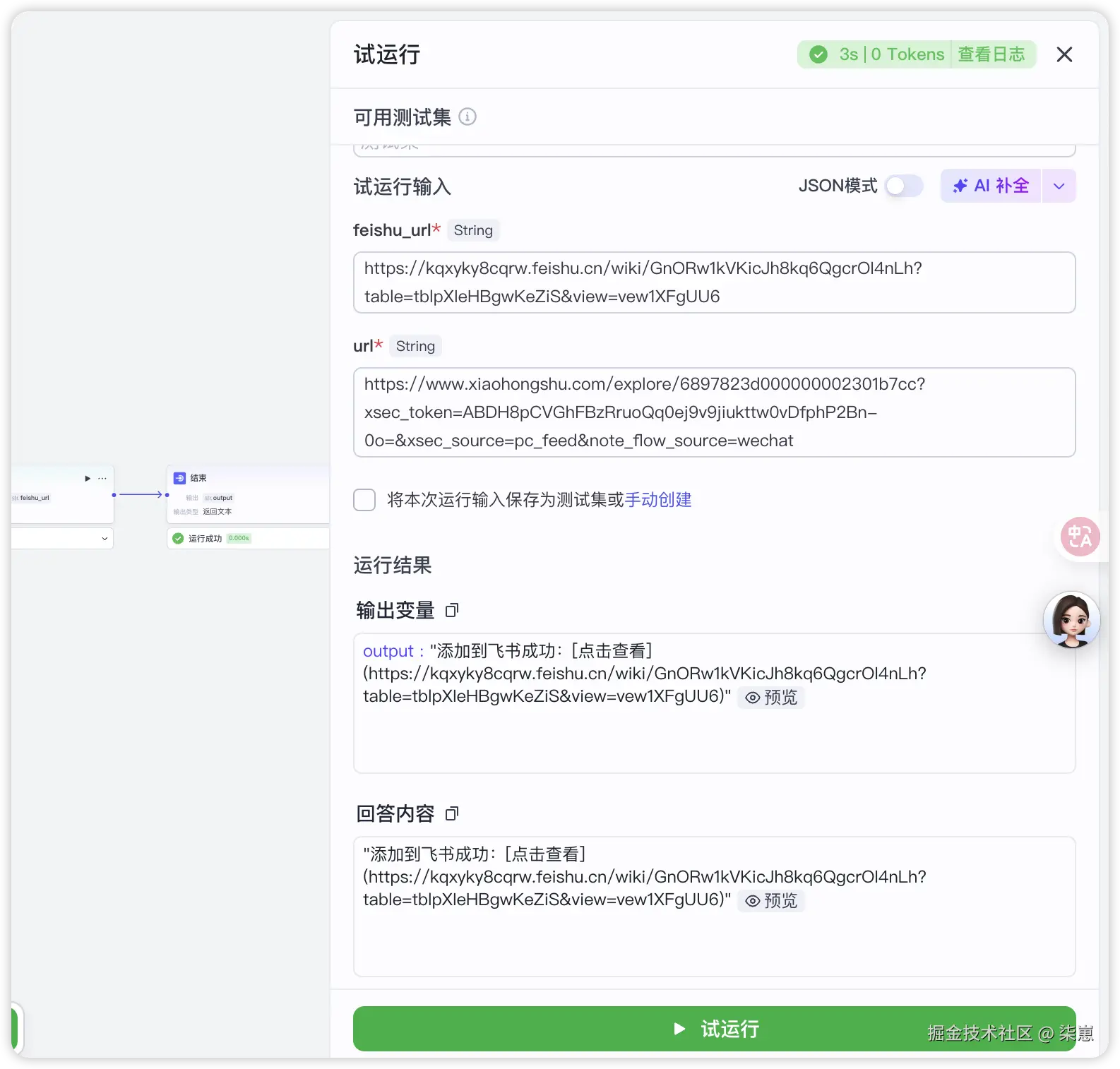 输入飞书多维表格的链接 + 小红书图文笔记链接