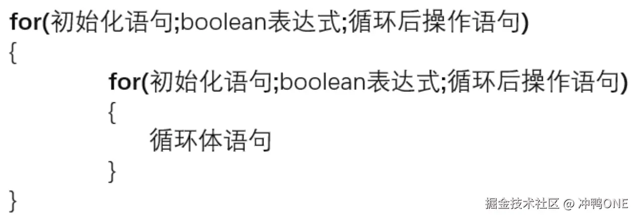 - 一个循环的循环体又是另一个循环,比如 for 循环里面还有一个 for 循环。