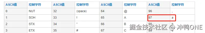 - 和 2 一样,只不过表示的是 16 进制的数值,格式如:'\uX',X 表示 16 进制的整数,如:97 的 16 进制是