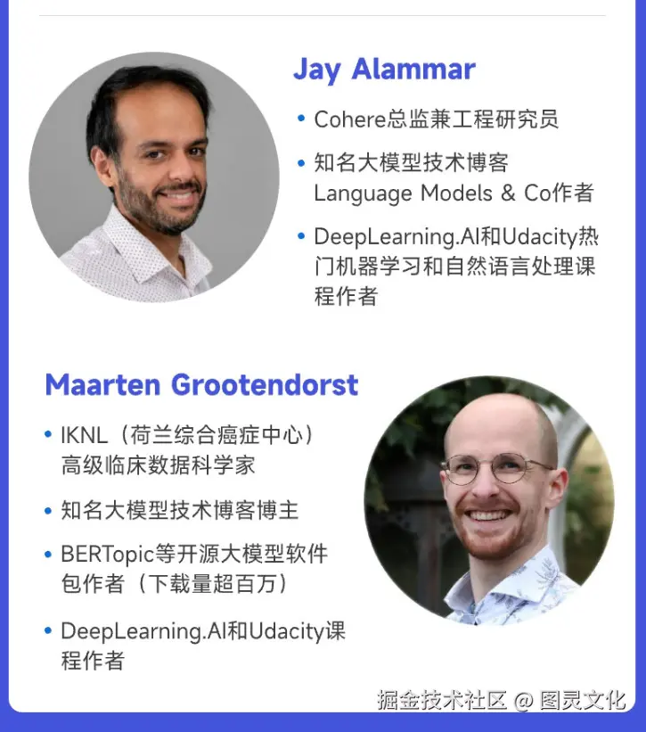 本书的作者杰伊·阿拉马尔**(Jay Alammar)和马尔滕·格鲁滕多斯特(Maarten Grootendorst)在大模型领域享有极高的声誉。