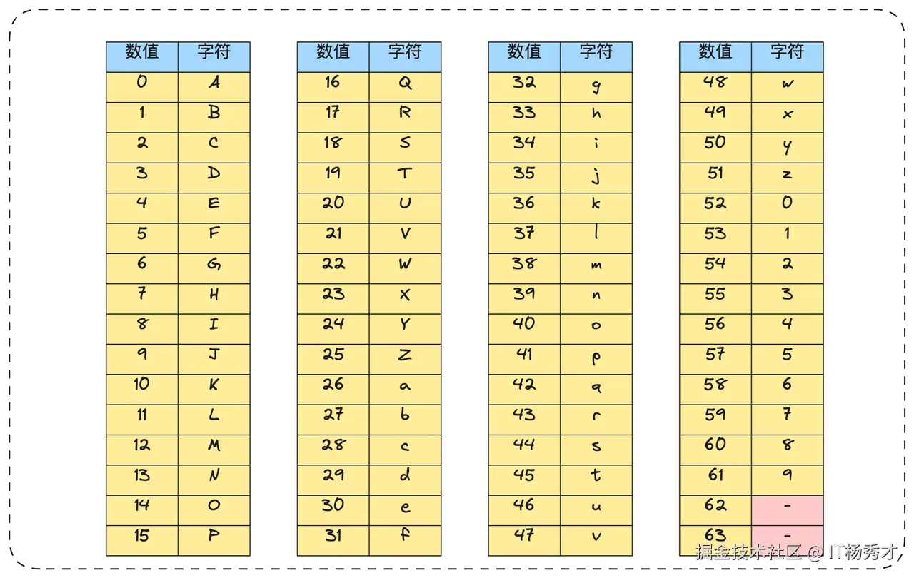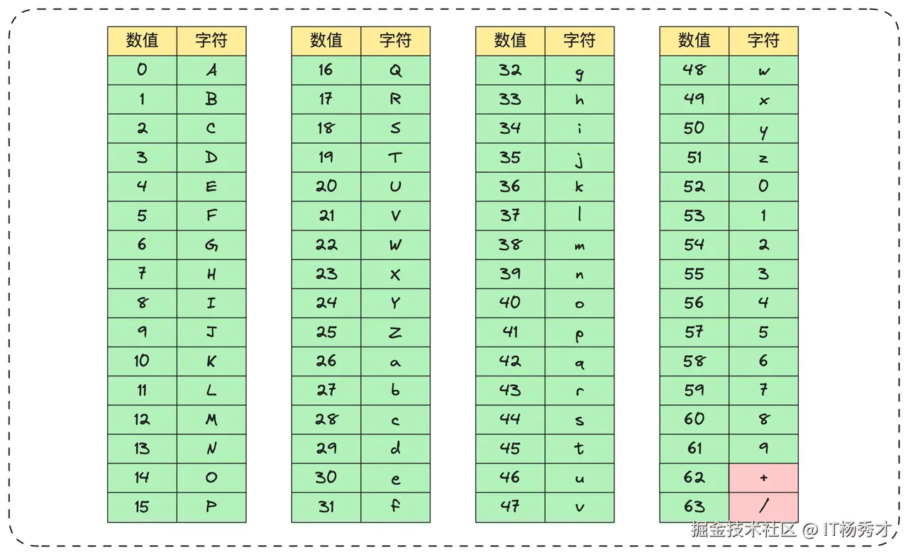标准的Base64编码表如下: