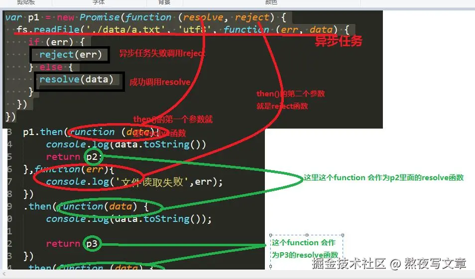 - Rejected(失败态) :当异步操作失败时,Promise 的状态会变为 Rejected,此时,Promise 会携带一个原因,表示失败的原因。