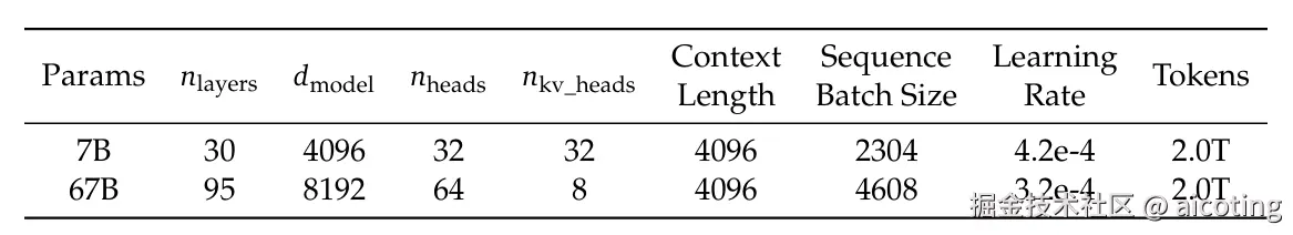 一、模型参数配置:从 7B 到 67B 的平滑扩展