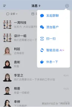 - 智能搜索:别再翻聊天记录了,一句话就能找到你想要的文件、聊天记录、会议内容。