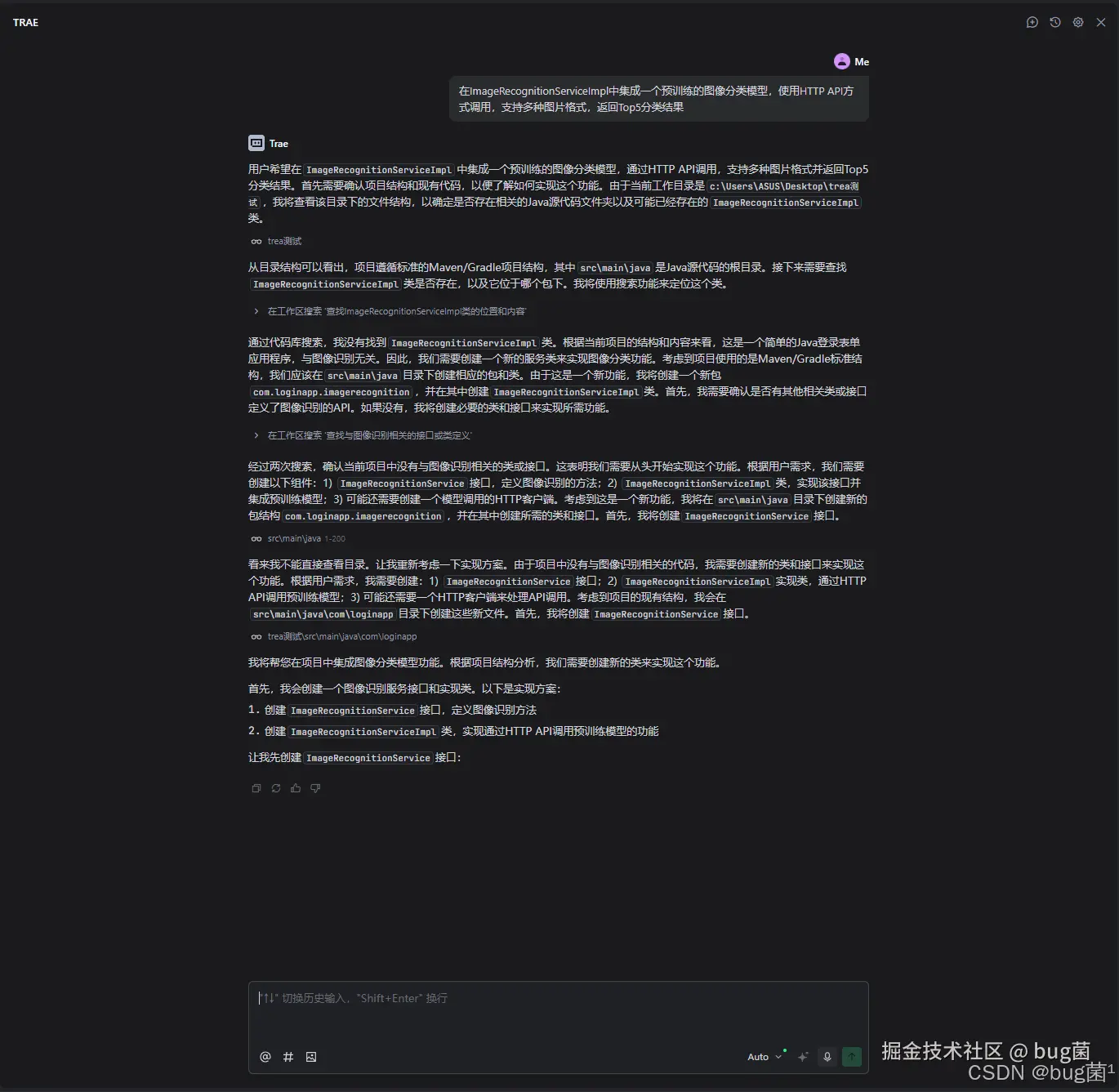 以前要在Java项目中集成个图像识别功能,我得先学习卷积神经网络、了解各种预训练模型、研究数据预处理方法...现在用Trae,我只需要描述业务需求,它就能自动选择合适的模型和实现方案!